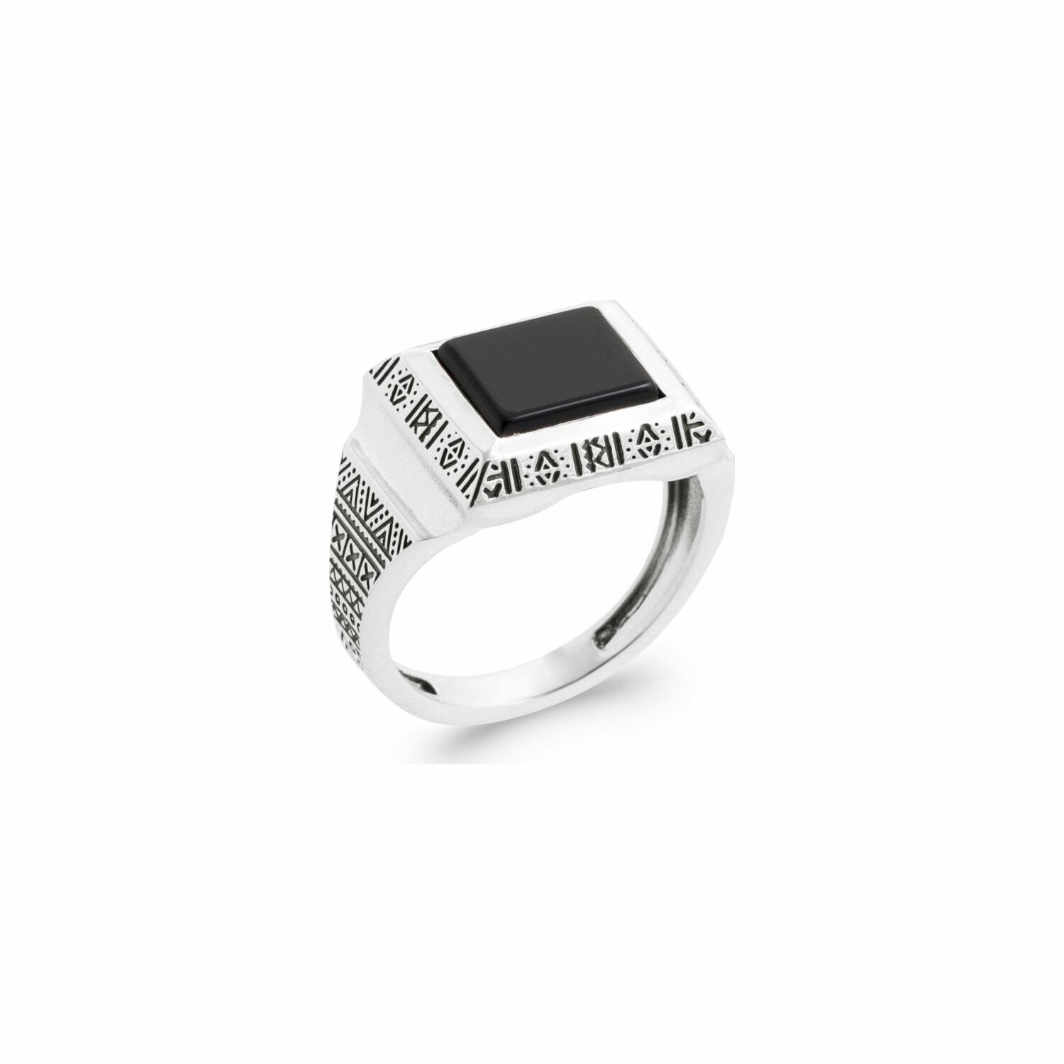 Bague en argent et agate noire