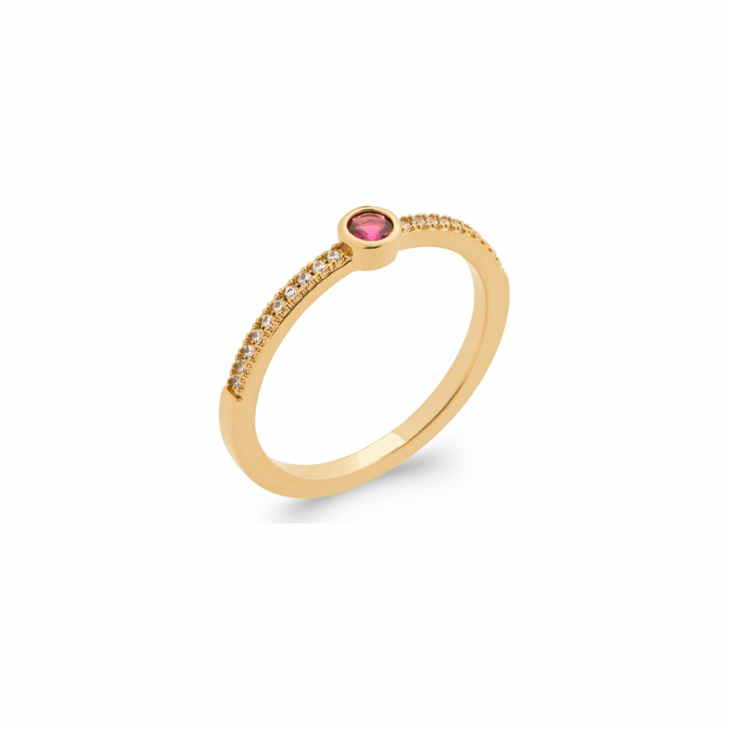 Bague en plaqué or, oxydes de zirconium et pierre synthétique