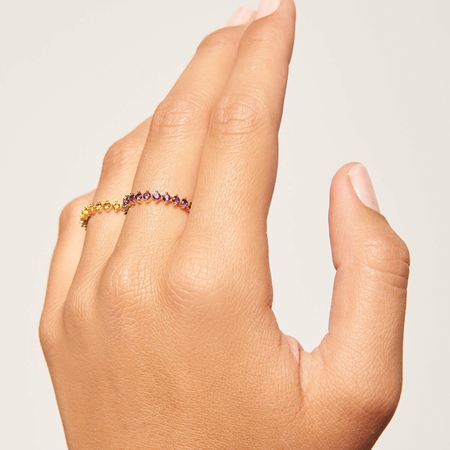 Bague PDPaola Citric Violet Bird en argent doré et oxydes de zirconium, taille 52