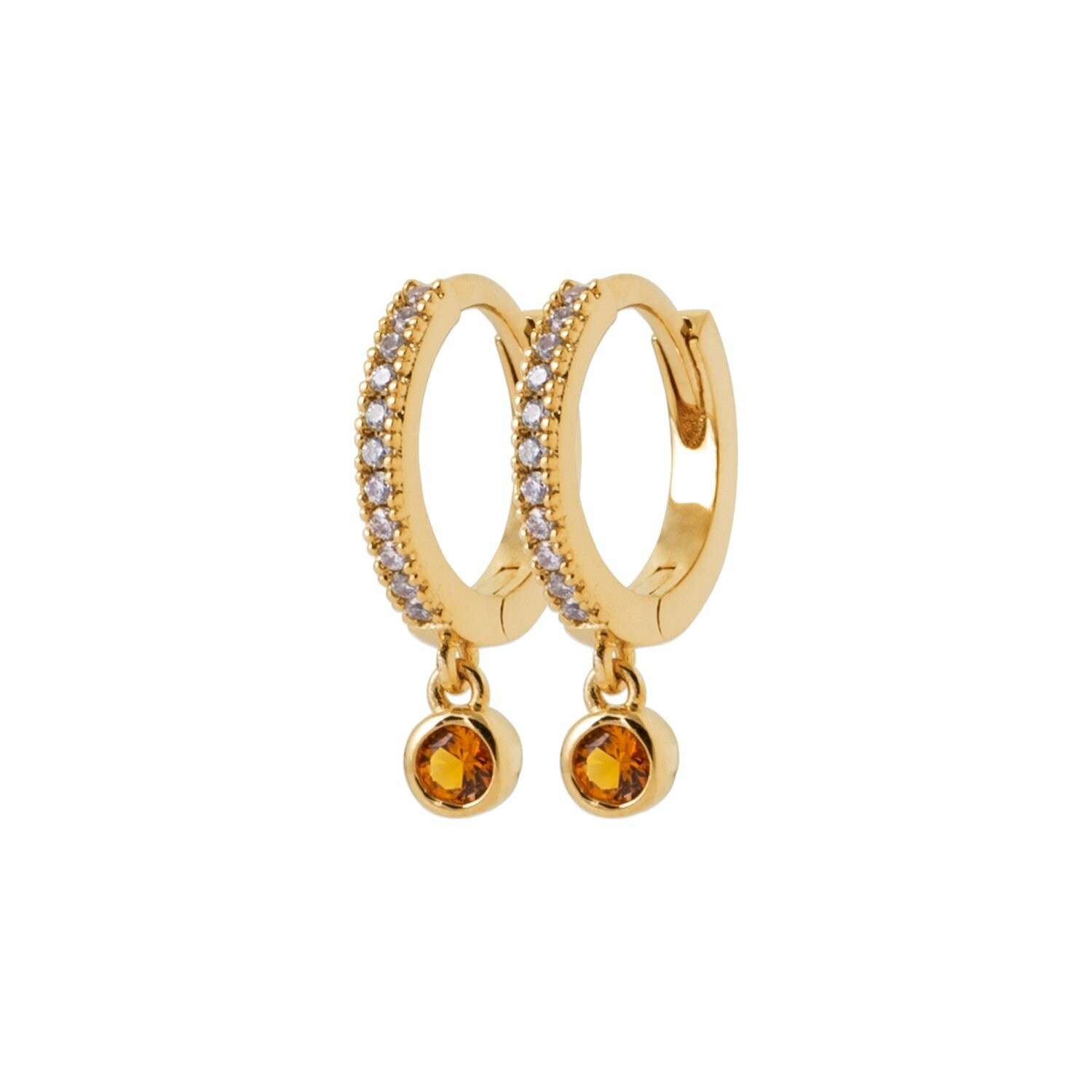Boucles d'oreilles créoles en plaqué or, oxydes de zirconium et pierre synthétique