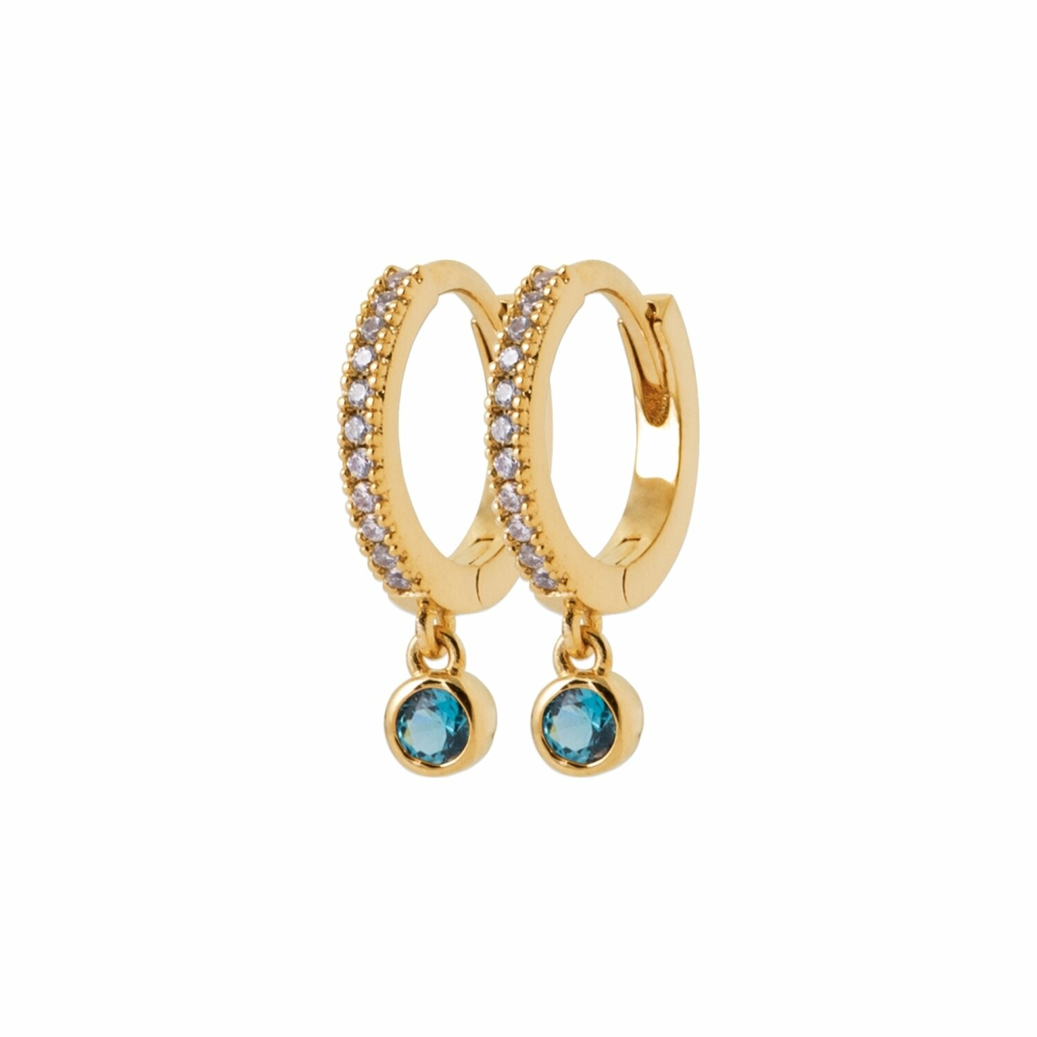 Boucles d'oreilles créoles en plaqué or, oxydes de zirconium et pierre synthétique