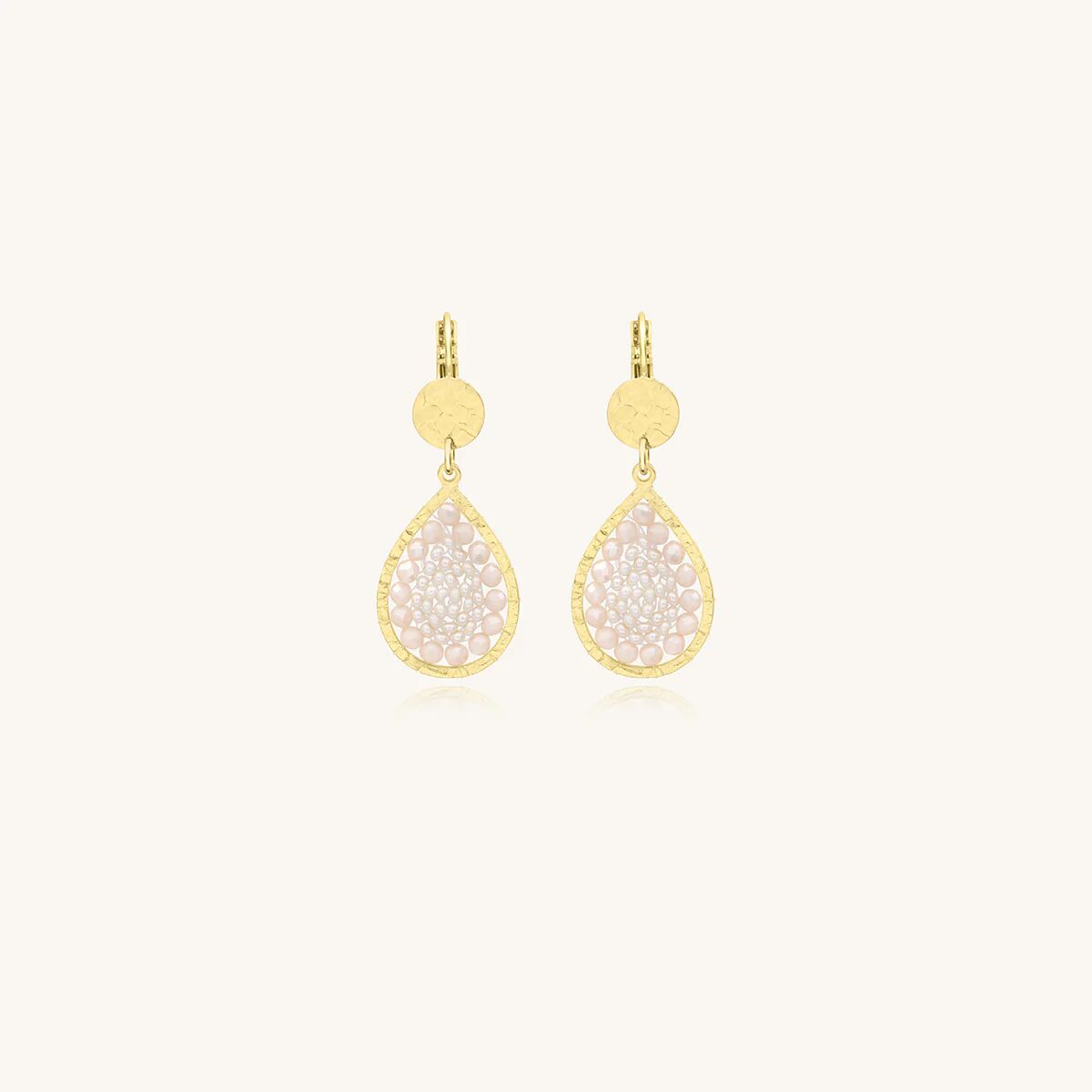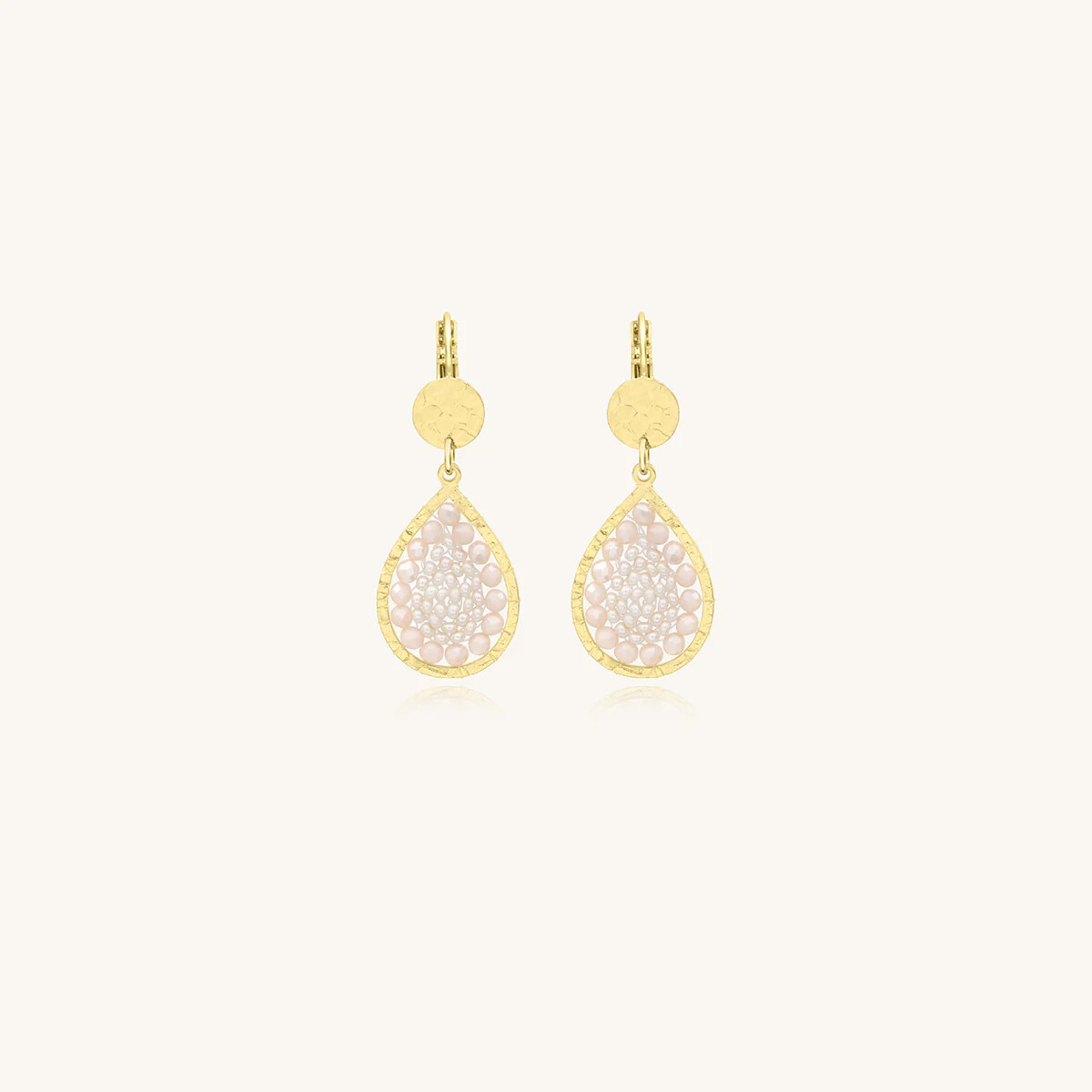 Boucles d'oreilles Sàntibé Bijoux Mini Ysé en laiton, métal doré et perles sable