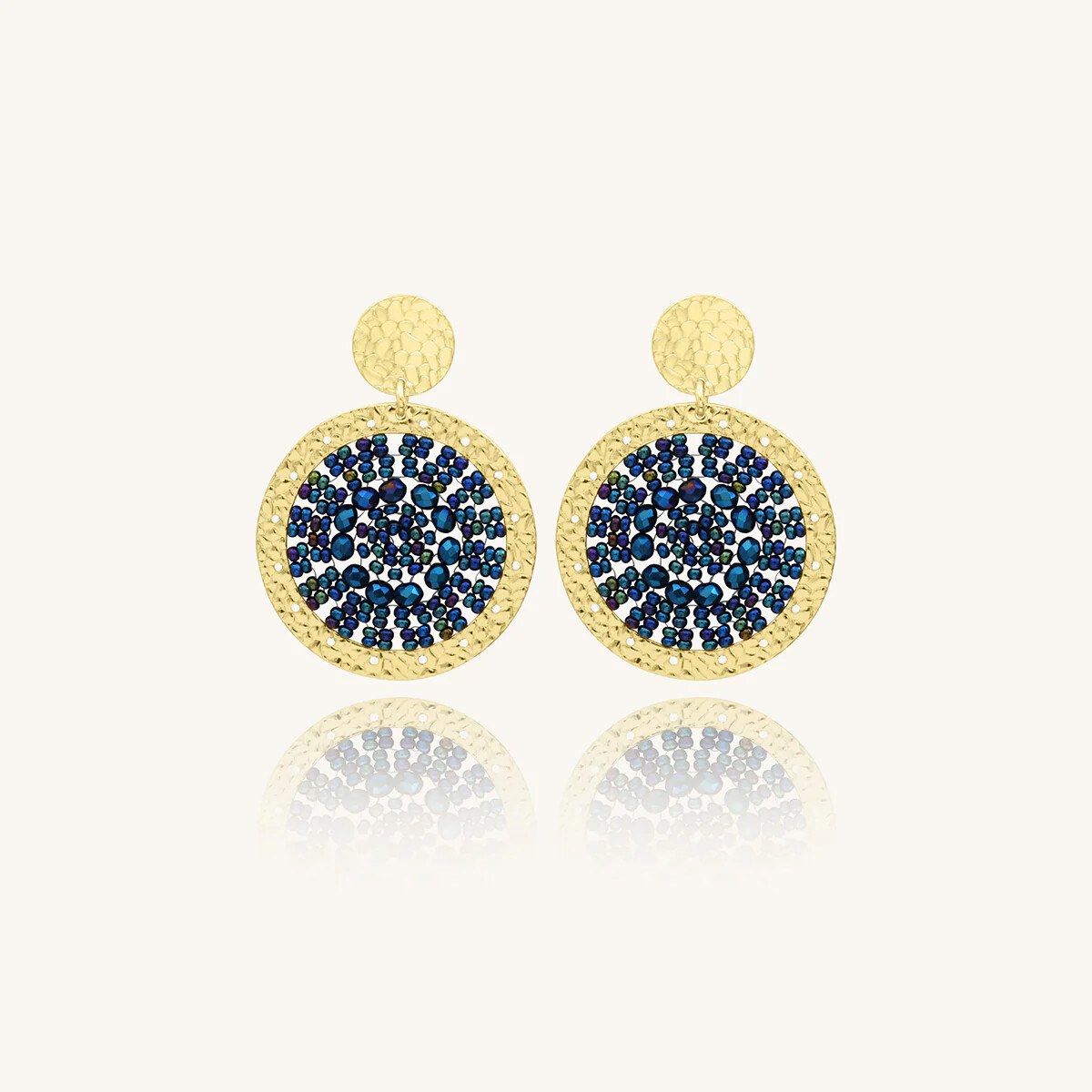 Boucles d'oreilles Sàntibé Bijoux Patagona en laiton, métal doré et perles bleu marine