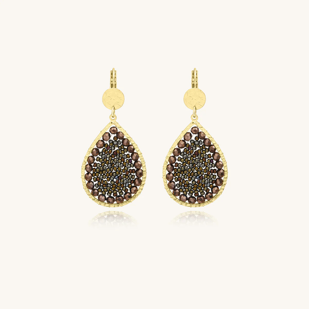 Boucles d'oreilles Sàntibé Bijoux Ysé en laiton, métal doré et perles noisette
