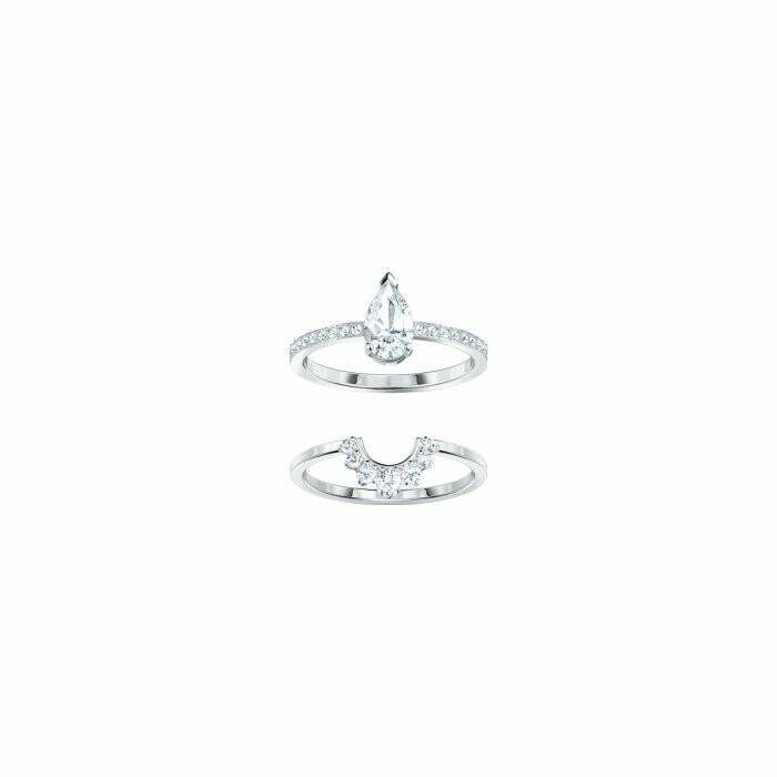 Parure de bagues Swarovski Attract Pear en métal rhodié et cristaux Swarovski, taille 52
